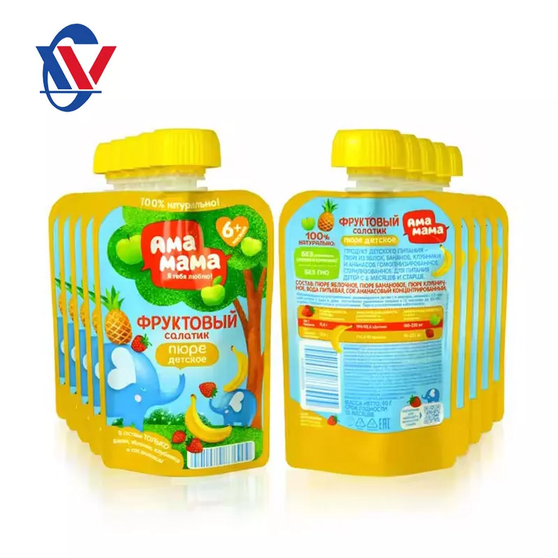 Struktura torby z jedzeniem zawiera głównie dwie części: dyszę i torbę wspierającą. Samo-wspierająca część torby zwykle przyjmuje czterokrotną strukturę uszczelniającą i wykorzystuje materiały kompozytowe w celu spełnienia wymagań różnych opakowań żywnościowych. Część dyszy jest podobna do konstrukcji słomy butelek, a dwie części są szczelnie połączone, tworząc opakowanie napojów, które wspiera ssanie. Ponieważ jest to miękki pakiet, zawartość worka dyszy nie jest łatwa do wstrząśnięcia po uszczelnianiu i jest łatwa w użyciu.