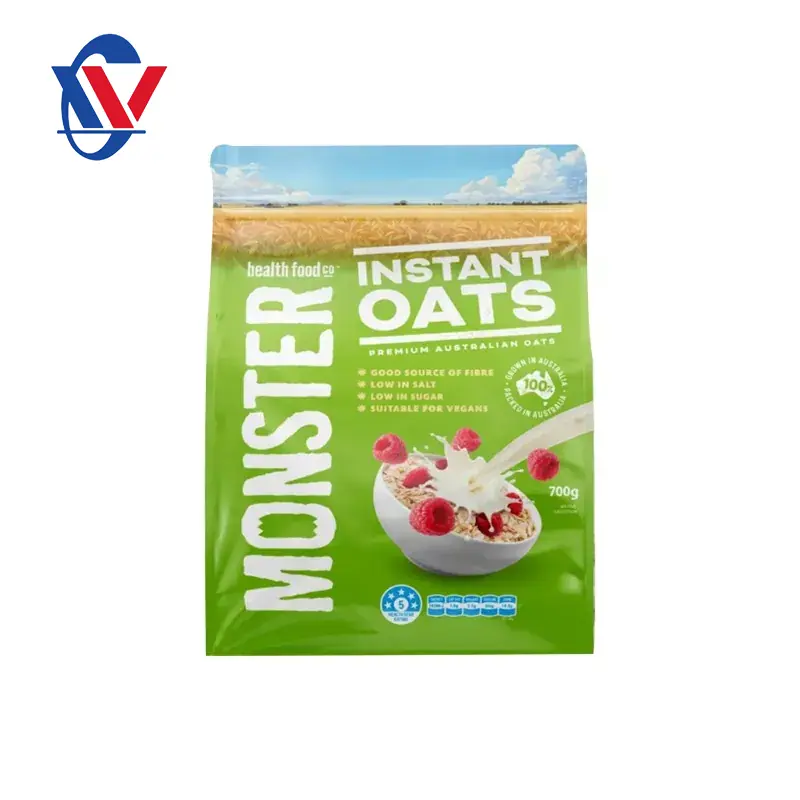 Nasze torby opakowaniowe z owsianki są wykonane z pochłaniacze tlenu, folii o wysokiej barierce, drukowania lustrzanego ciężaru, drukowane z powłokami przyjaznymi dla środowiska, aby stworzyć oszałamiające wizualnie roztwór opakowania, które pięknie wyświetla się na półkach sklepowych. Torby opakowaniowe z płatkami owsianymi Bingoe wykonane z recyklingu, elastycznego, odpornego na kłucie folii bariery tlenu zatrzymają szkodliwe elementy i utrzymają dłuższy produkt.